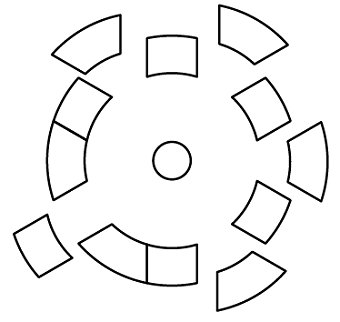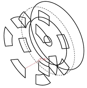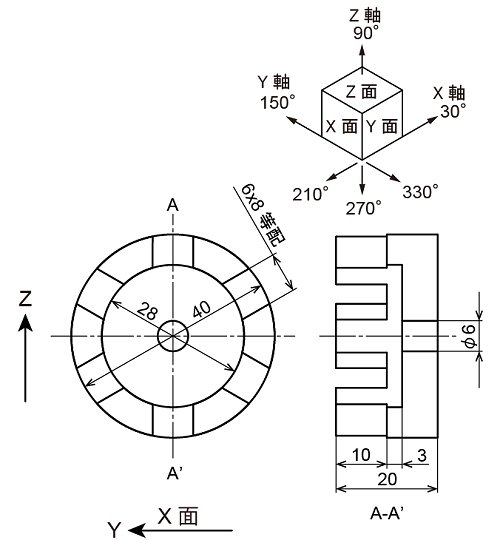 これは、8mm幅が6つ、円周上に等間隔の角度で配置されていることを示します。
