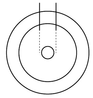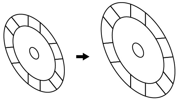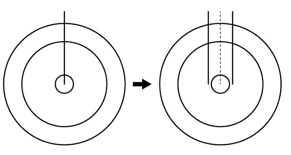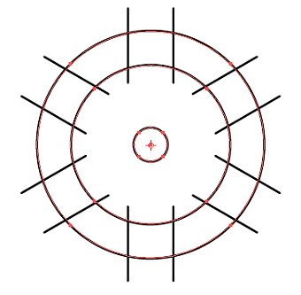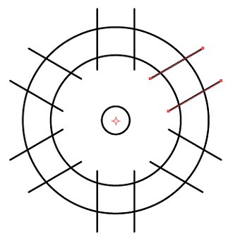 2本の直線を、円の中心を中心として60°ずつ5回、回転コピー(計6個になる)します。