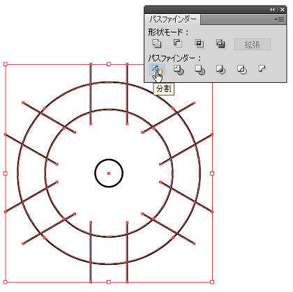 φ6の円を除いて選択し、パスファインダーの分割を実行します。