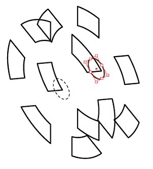 8mm幅の部分6つを選択し10mm/30°方向に移動します。