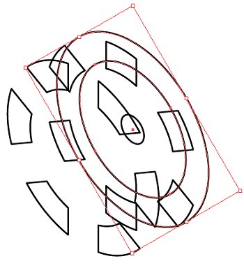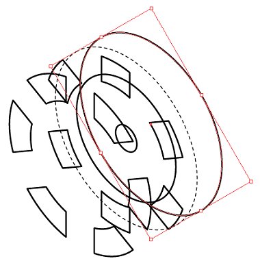 3つの円だけ選択し、45°回転します。これは後々のアイソメ図になった時に、アンカーポイントが長軸と短軸の位置にあるようにするためです。