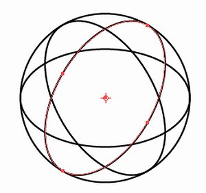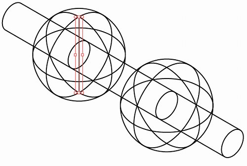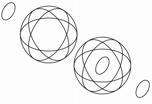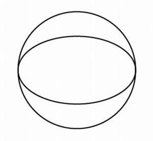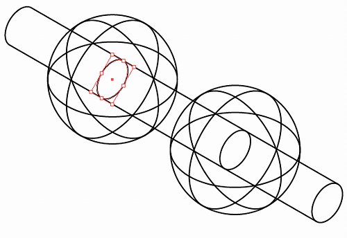 まず、球を1つ書き、同じ大きさの35°楕円を中心に書きます。