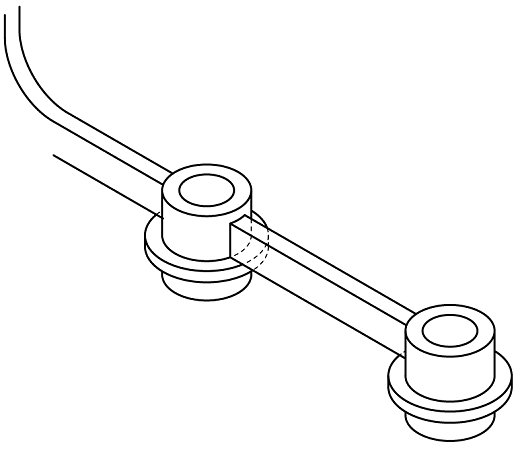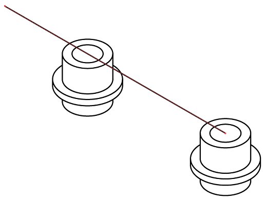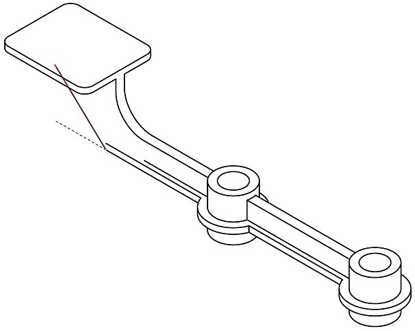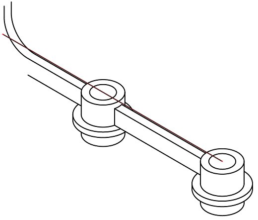 この直線を10mm下方へ移動、210°方向へ3mm移動します。