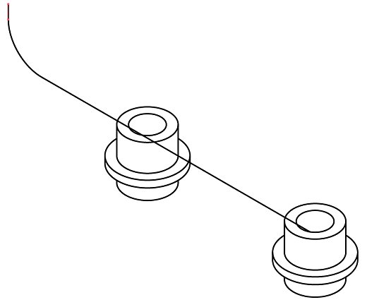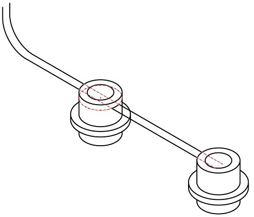 150°方向の線の以下の端点から18mm/150°の直線を引き。その端点を17mm上方へ移動します。