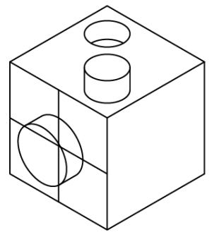 等測面(アイソメ面)全てに穴や円柱があるパターンです。