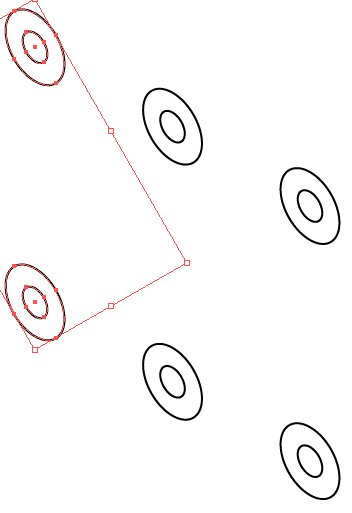 φ5とφ12の35°楕円を描いて、垂直方向45mmにコピーします。