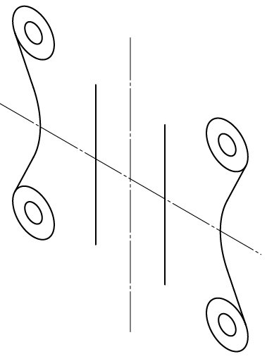 中心線の上下に二重細線があり、この中心線で左右対称であるという事を示しています。