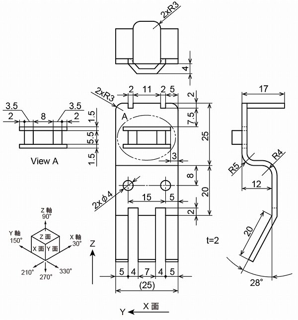 斜めの部分の板厚はアイソメ軸方向ではないので2mmではありません。