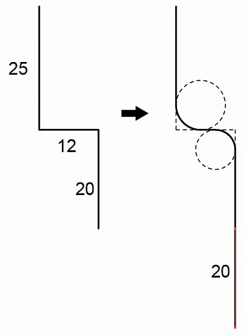 ”ニゲ“は、これが無いと曲げ加工時に曲げる部分の両脇も引っ張るように変形してしまうのを防ぐために設けられます。
