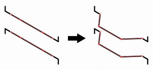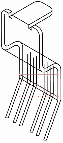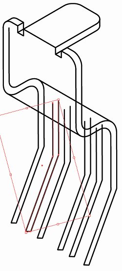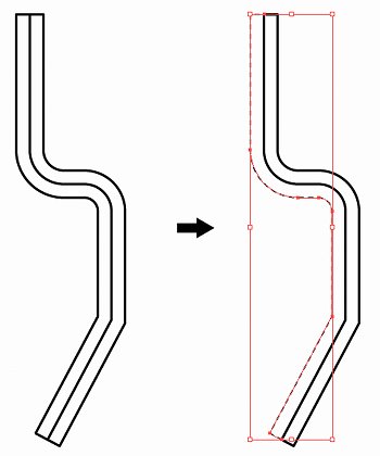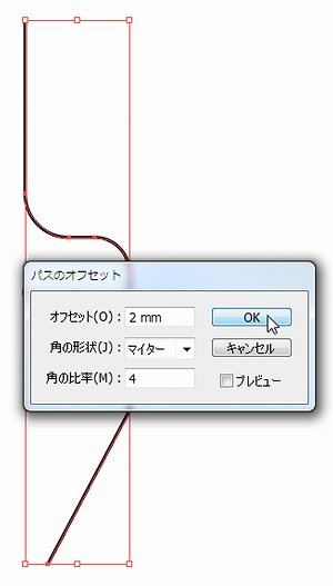 真ん中の8mmの部分のみダイレクト選択ツールで選択し(両端の3.5mmとの境のアンカーも含む)、4mm/210°に移動します。