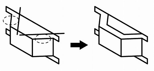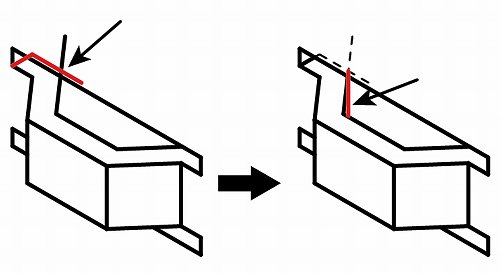 上部のL字の曲げは、曲げ部分の両脇に2mm×2mmの”ニゲ“が切られています。