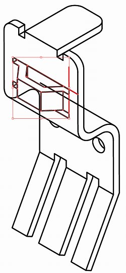 細かい所ですが、奥側の縦線が見えると思いますので2mm/30°方向の奥行線を引いて交点を求め、垂直線を引きます。