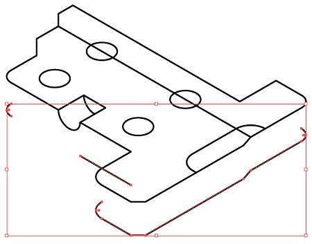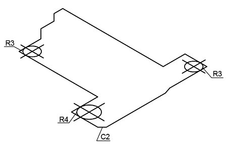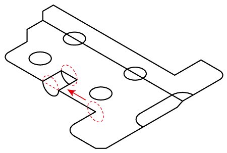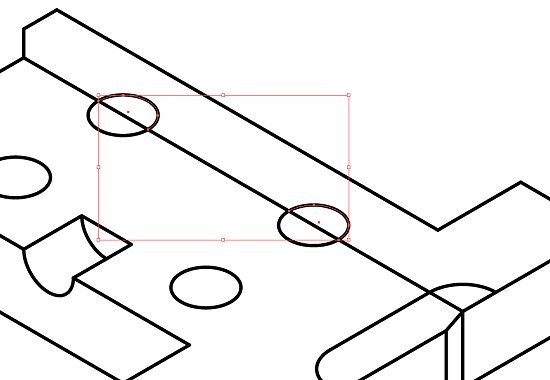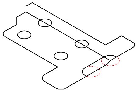 丁度へこみのR4の中心が穴と中心が一致していますので、そこにφ6の楕円を置いてコピーしていきます。