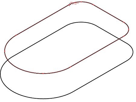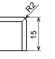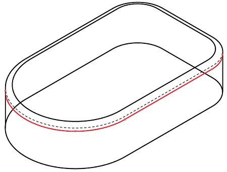内側の形状を15-2=13mm/90°に移動します。これが包絡線を描くための中心線になります。