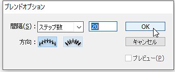 ブレンドオプション(Wキーを押してENTER)で以下の様な設定でOKクリック。