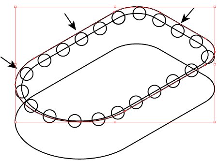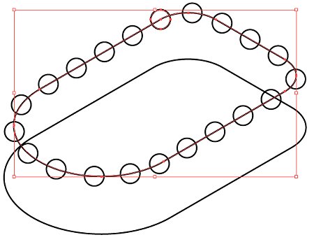 この並んだ円の上側の半分と接する位に最初に描いた外形を垂直上方にコピーします。