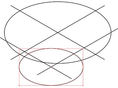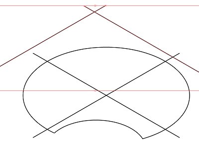楕円弧と直線の交点に、φ5楕円を配置します。