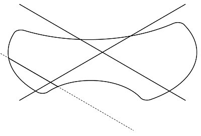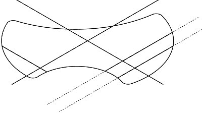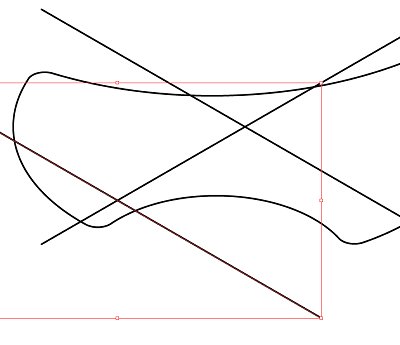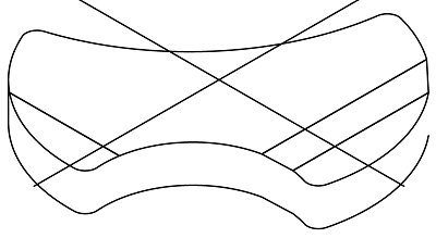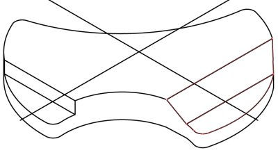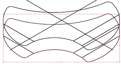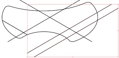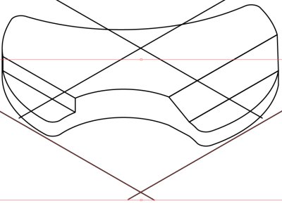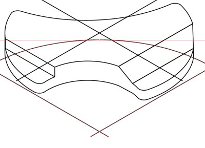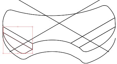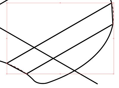 今書いた2本の線の間の曲線部分は、よく見るとこの間は直線ですので書き直します。