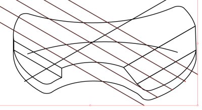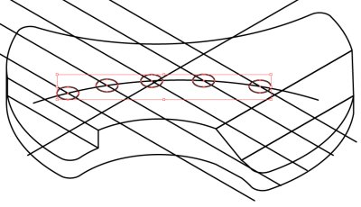 次に、X軸方向の中心線を23mm/330°に、さらにその線を8mm/330°にコピーします。