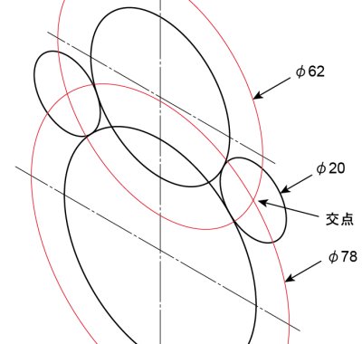 この交点にφ20の楕円を置けば良い事になります。