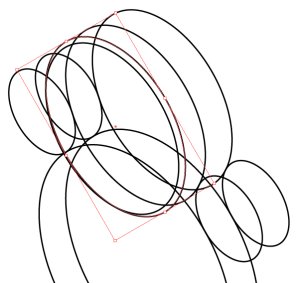 楕円は後から流用しますので、この時点で不要部分を削除するのはやめておきます。