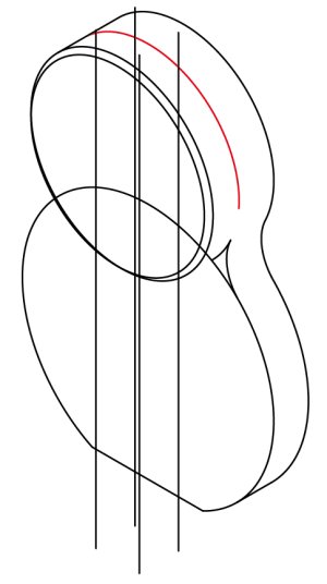 φ32楕円を描き、それに合わせて線を加筆します。