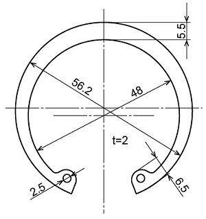 以下の様な、 穴用C形止め輪の図面があったとします。
