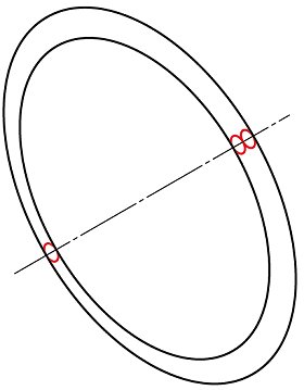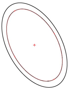 5.5mmの厚みが記載されていない場合は、外径と内径の差の1/3(この場合(56.2-48)÷3≒2.7mm)の楕円を作り、下側の位置に配置してそこまで内径を移動させます。