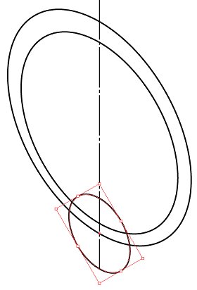 上の厚みが5.5mmですので中心線上にφ5.5の楕円を配置し、その分φ48楕円を下にずらします。