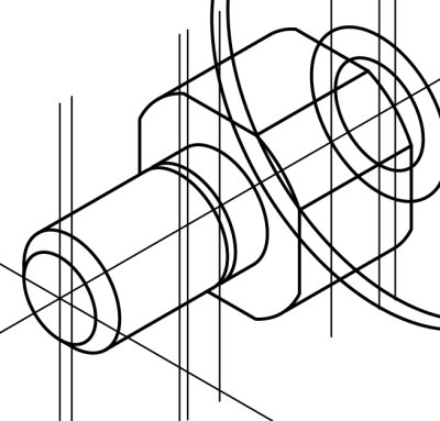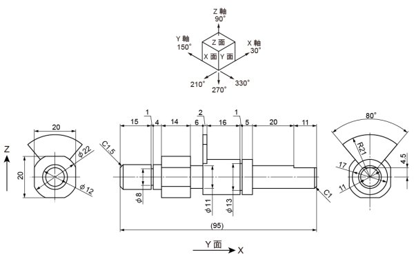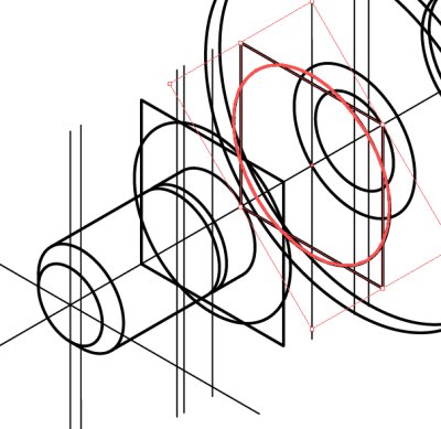 手書きの時には楕円をコピーしながら描くなんて事はできませんでしたので、通常、先に寸法を追って補助線(XYZ軸)を引いていきます。