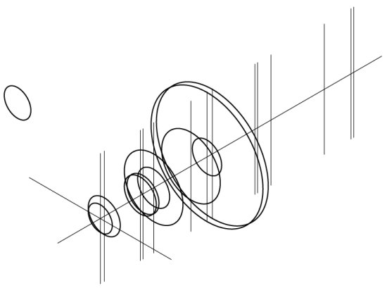 例えば、テクニカルイラストレーション技能検定試験で時々シャフトではないですがある一定の方向に楕円が並ぶ物が出てきます。