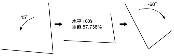 その直線をー80°回転コピーし、下の端点を合わせます。