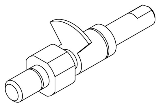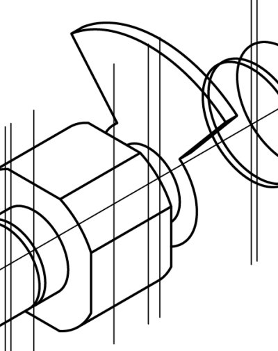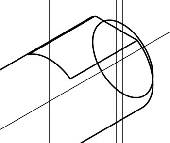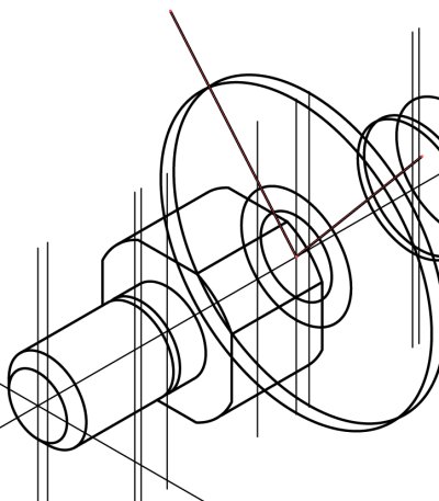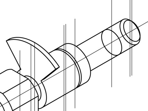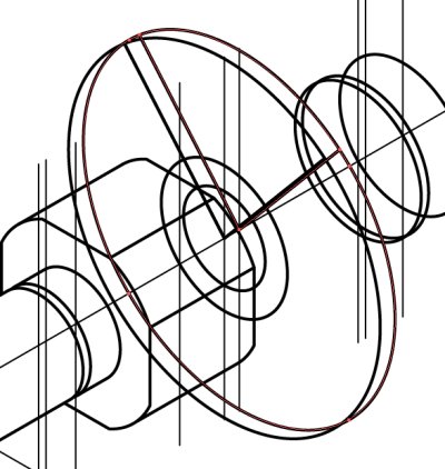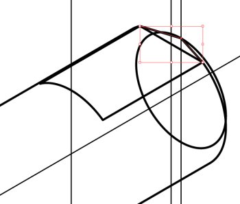 奥側のシャフトの稜線を引いて、不要部分を削除します。