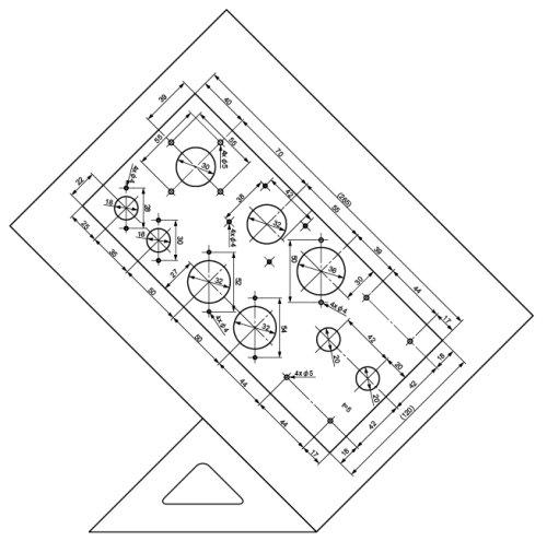 上図のように図面自体を三角定規を使用して45°傾けて、コピー機にセットします。