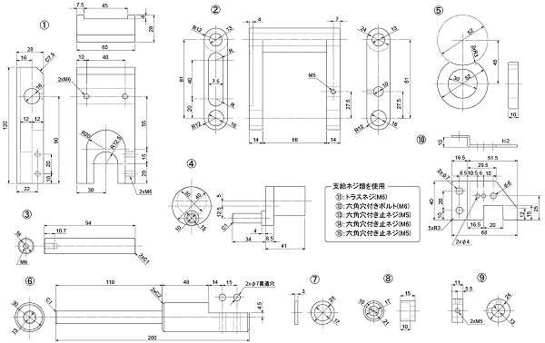 ●ネジ類は“支給ネジ類”というファイルに入っている物を使用してください。(すみませんが図面書くの面倒でしたので...)