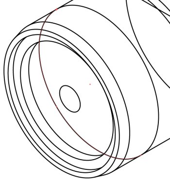 レンズの先端側の外周楕円弧を14mm/30°にコピーします