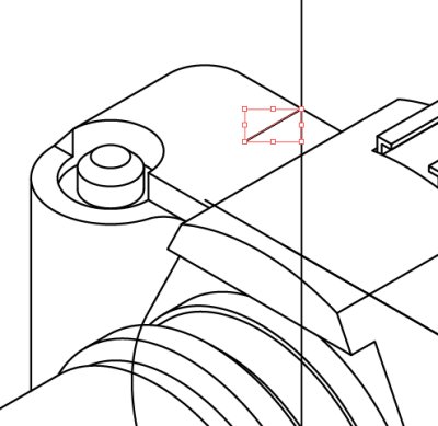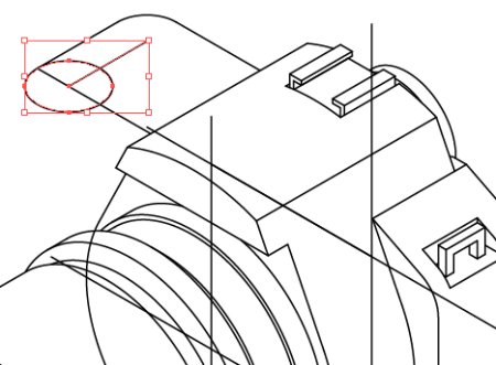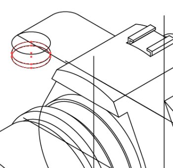 奥側のシャッターのある側はカメラレンズで見えなくなる部分もあるかと思いますので、続いてはレンズ部分を描きます。