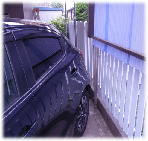 結構奥まで入れて、見ての通り私道にはみ出します...右隣のお家には一応ご挨拶はしてあります。