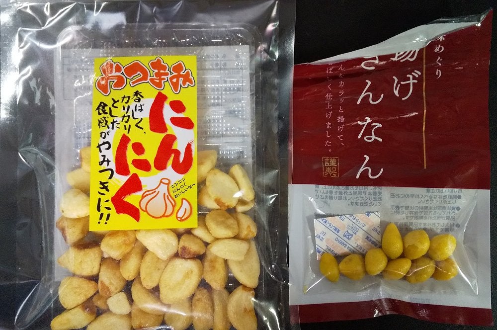 右はスーパーヤオコーの“揚げぎんなん”!これ旨いです...銀杏です...