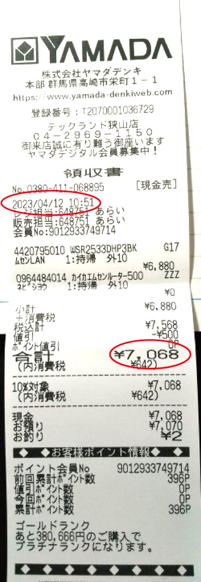 翌日、ヤマダ電機で安めのルーター購入...それが下の。