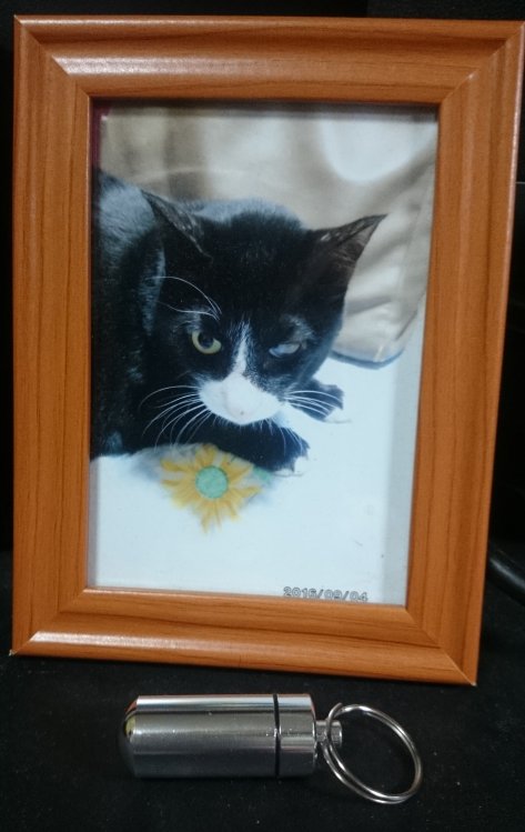 この写真の手前のカプセルには分骨されたマーの骨が入っています...かなり小さい骨なので、手の骨かと思います。